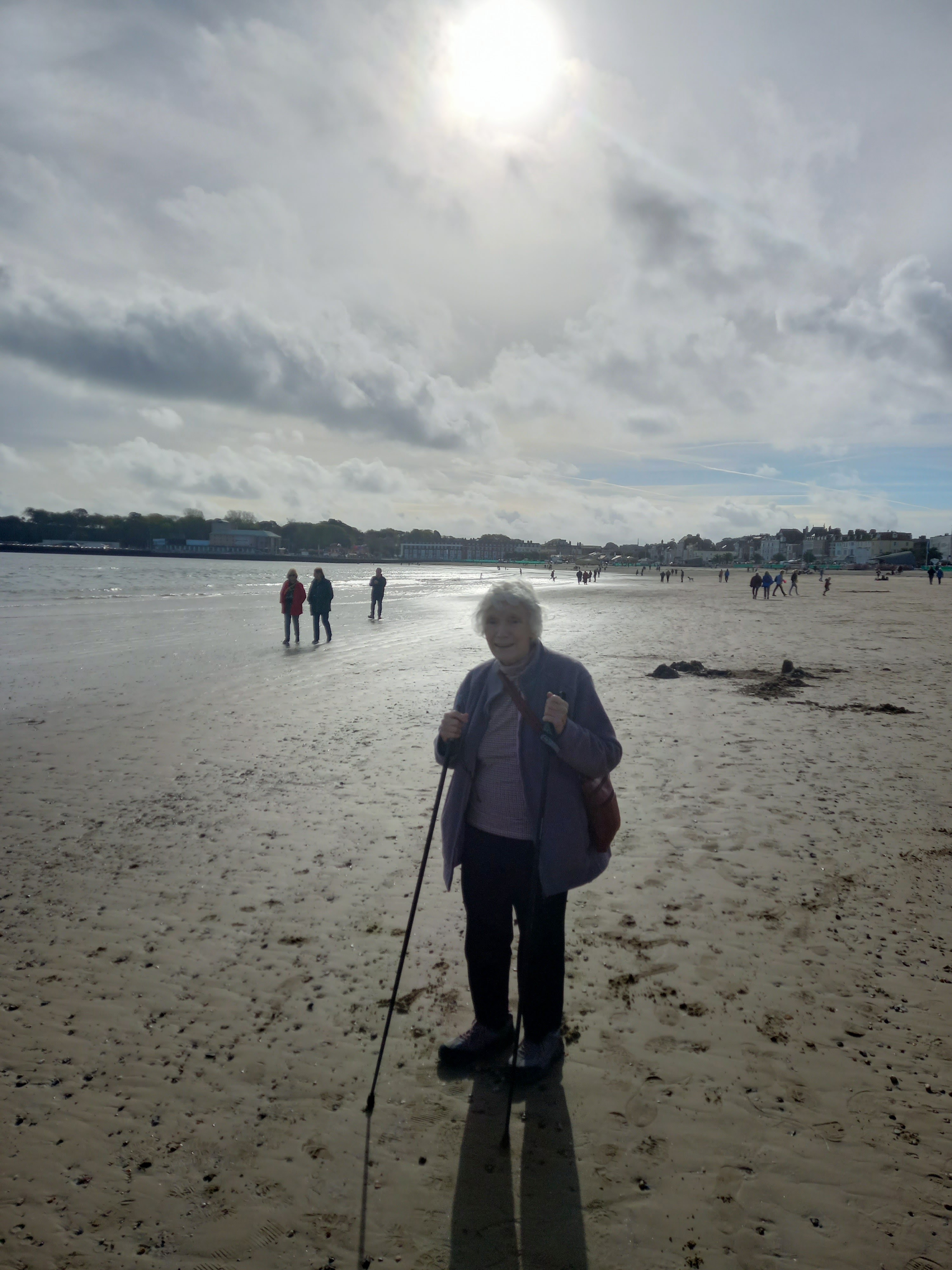 This is just a good excuse to put a photo of my friend Tessa on my blog post. She has been very ill and since before lockdown wasn’t able to get to the sea side. She lives about 50 miles inland and it was all too much for her. Well she has since been diagnoised and getting treatment so my daughter and I took her on the train to her nearest seaside just to show her she could do it. This was the place on our walk on beach where she said “that’s enough. I’d like to turn round now.” So enough and no more. [Picture was taken about 11.30am but it was a dark old day!]