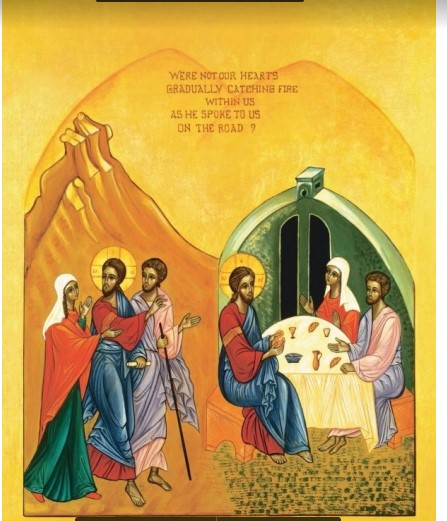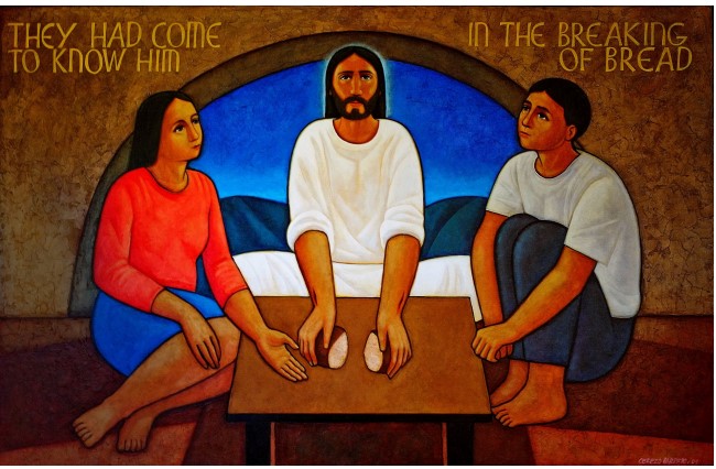 Scholars like NT Wright and Wayne Grudem have argued that maybe Cleopas was walking home with his wife Mary The artists are Sr Marie-Paul Farrar OSB and Maximo Cerezo Barredo who painted several versions of the meal. Thank you to David Pott for bringing this to my attention.